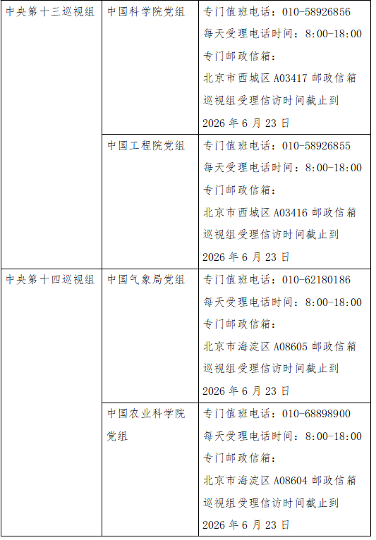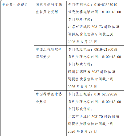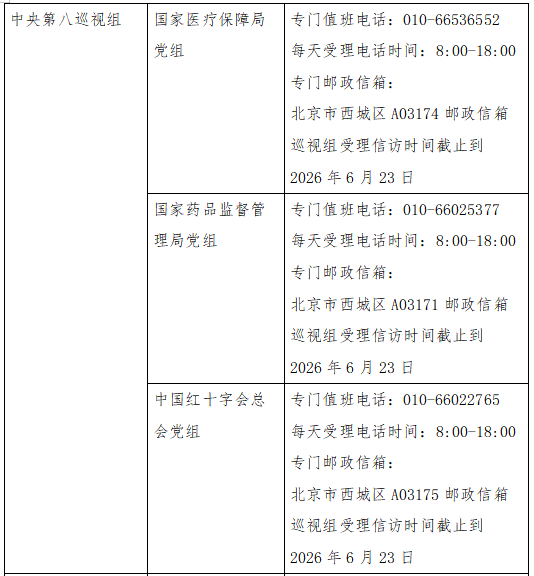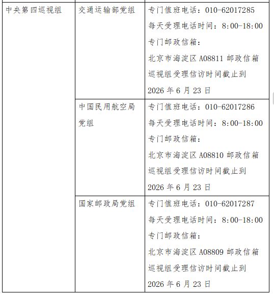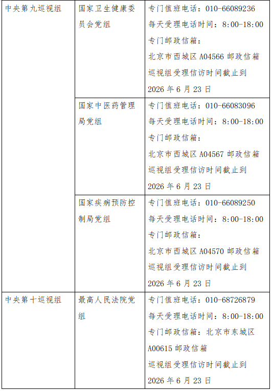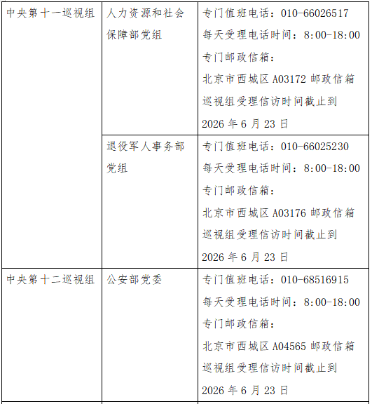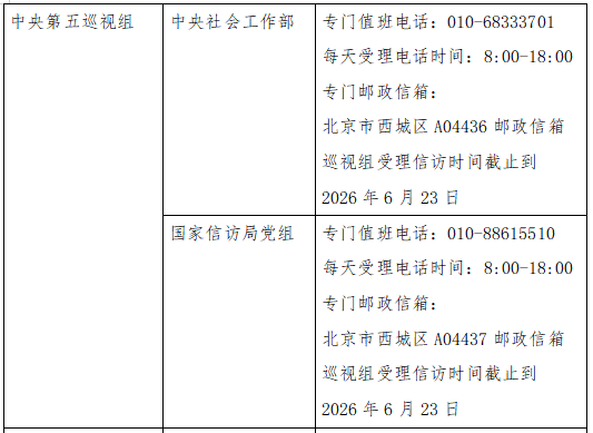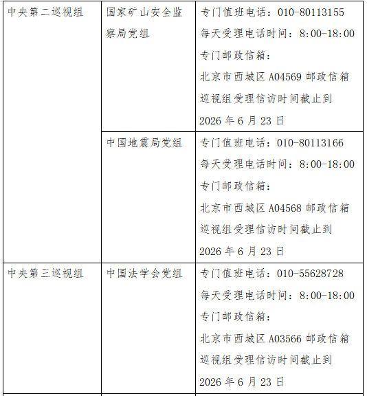 已進(jìn)駐中央巡視組聯(lián)絡(luò)方式: