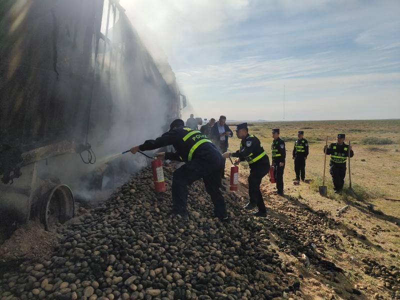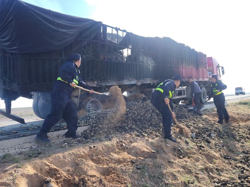 “叮鈴鈴、叮鈴鈴......”9月16日上午9時(shí)許,一聲清脆的警鈴讓阿拉善邊境管理支隊(duì)烏力吉邊境派出所的民警們的心為之一驚,有群眾報(bào)警稱在轄區(qū)S218省道上,一輛滿載土豆的重型半掛牽引車起火自燃了。