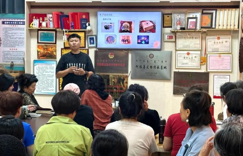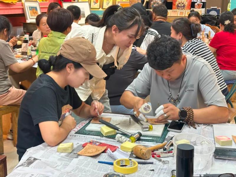連日來(lái),皮雕技藝培訓(xùn)班也在如火如荼開(kāi)展。自治區(qū)級(jí)非遺項(xiàng)目皮雕技藝傳承人溫都爾木現(xiàn)場(chǎng)指導(dǎo)學(xué)員制作傳統(tǒng)皮雕,并將皮雕技藝創(chuàng)新應(yīng)用于錢包、腰帶等日常用品。“此次培訓(xùn)吸引了30多名農(nóng)牧民參與,我們不僅傳授傳統(tǒng)皮雕工藝,還教授阿拉善寶石鑲嵌技法,助力農(nóng)牧民掌握增收新技能,實(shí)現(xiàn)技藝傳承與增收致富雙贏。”溫都爾木告訴記者。