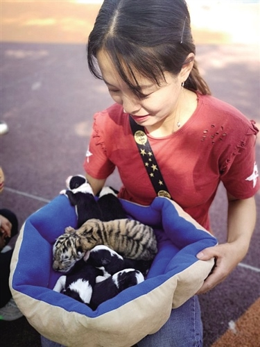 據(jù)發(fā)布信息的包頭市勞動(dòng)公園動(dòng)物園園長(zhǎng)曾勇介紹,6月2日,動(dòng)物園里出生了一只雌性小虎崽,小虎崽出生后,虎媽媽因沒(méi)有帶娃經(jīng)驗(yàn),出現(xiàn)脾氣暴躁的情況,為防止小虎崽被傷害,只能先給它喂食羊奶。動(dòng)物園在高興之余借鑒了其他地區(qū)的應(yīng)急措施,由于狗和貓科動(dòng)物之間的奶源是互通的,可以實(shí)現(xiàn)相互喂養(yǎng),便發(fā)布消息,希望通過(guò)狗媽媽替代哺乳的方式幫助東北虎幼崽成長(zhǎng)。為保證虎寶寶健康,動(dòng)物園決定為它尋找一只生產(chǎn)20天以?xún)?nèi)的狗媽媽?zhuān)桂B(yǎng)時(shí)間為20天左右,喂養(yǎng)期間,動(dòng)物園為它們準(zhǔn)備單間,小老虎和狗兄弟同吃同住。