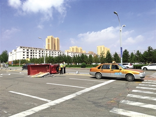 出租車(chē)駕駛員弓先生告訴記者:“當(dāng)時(shí)我駕車(chē)從北向南行駛,車(chē)上有一名乘客坐在副駕駛位置,正在此處停車(chē)等待掉頭時(shí),后面的三輪車(chē)撞了上來(lái),當(dāng)時(shí)撞擊的力度很大,把我的車(chē)撞出了線(xiàn),三輪車(chē)側(cè)翻也撞倒了護(hù)欄?!惫壬f(shuō)事故發(fā)生后乘客自行離開(kāi)。三輪摩托車(chē)駕駛員姜先生身上多處擦傷,他說(shuō)當(dāng)時(shí)車(chē)上只有他一人,也是北向南行駛。姜先生說(shuō):“車(chē)上拉載的都是裝修用具和材料,事故發(fā)生時(shí)有些蒙。”