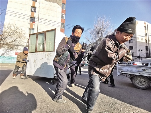 “由于您的車長期占用小區(qū)公共資源,給小區(qū)居民出行帶來不便。請您看到通知后,在3日內(nèi)自行將您的車挪出小區(qū),如逾期未挪走,我們將您的車做無主僵尸車報相關(guān)單位統(tǒng)一處理”。1月15日,黃河西路街道友誼19#四社區(qū)將通知貼在一輛鐵皮車輛醒目的位置,一直無人將車輛挪走。圖為1月18日,友誼19#四社區(qū)的工作人員將該“僵尸車”清走時,車主突然現(xiàn)身。社區(qū)工作人員耐心細(xì)致地與該車主交流后,車主表示配合。文/圖 李強(qiáng)
