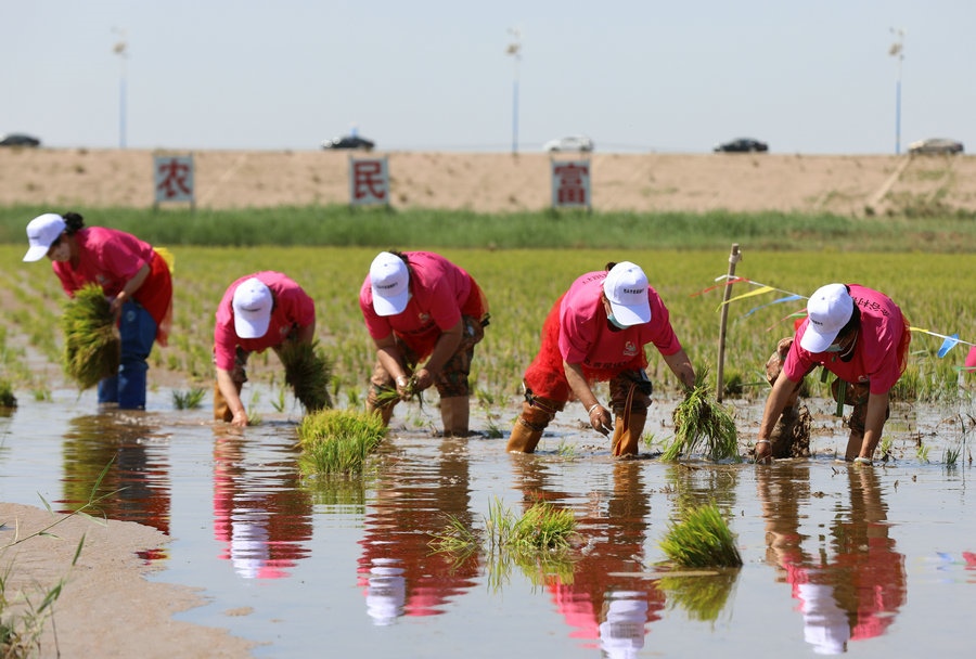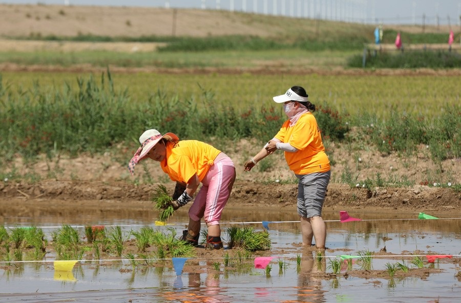 6月18日,2022年包頭市首屆插秧節(jié)暨“網(wǎng)約游東河·玩轉(zhuǎn)新農(nóng)村”主題活動(dòng)在此間舉行。當(dāng)天,來(lái)自東河區(qū)的20支插秧隊(duì)伍,走進(jìn)烈日炎炎的水田,挽起褲管,穿上水靴,進(jìn)行了一場(chǎng)別開(kāi)生面的插秧大賽。