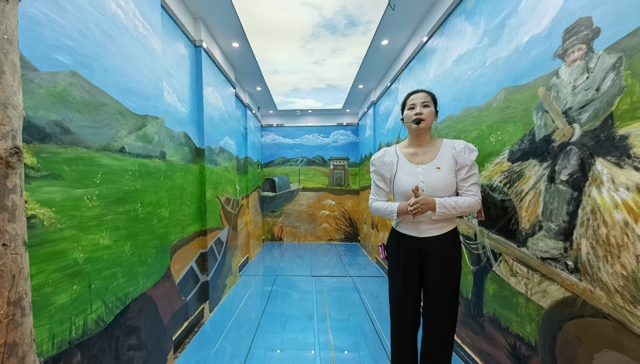 王大漢村村史博物館內(nèi),講解員正在講解黃河“水旱碼頭”  記者 張楊攝影