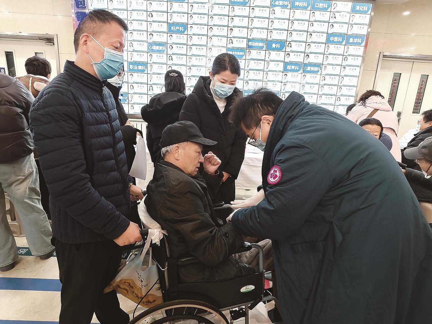 當日上午9時許,包鋼三醫(yī)院門診大廳已經是人頭攢動。大廳里的“包頭市‘防殘減殘助殘暖冬行動’篩查服務”指示牌格外醒目,抽血、CT、眼科、口腔等專設服務窗口前有許多殘疾人朋友在排隊等候,醫(yī)護人員引導殘疾人朋友接受檢查,來自北京的專家正在為一位坐在輪椅上的肢殘人士進行下肢功能檢查,手法專業(yè)而細致。