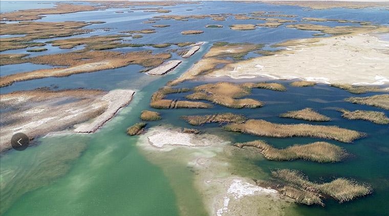 當(dāng)落日余暉穿透黃河三盛公水利樞紐的橋洞,18孔橋洞滿是金光燦燦,正如“洞映斜陽入畫長”,美麗且壯觀。