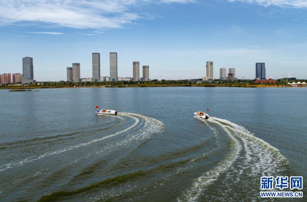 10月14日拍攝的伊金霍洛旗環(huán)城水系景色(無人機照片)  。
