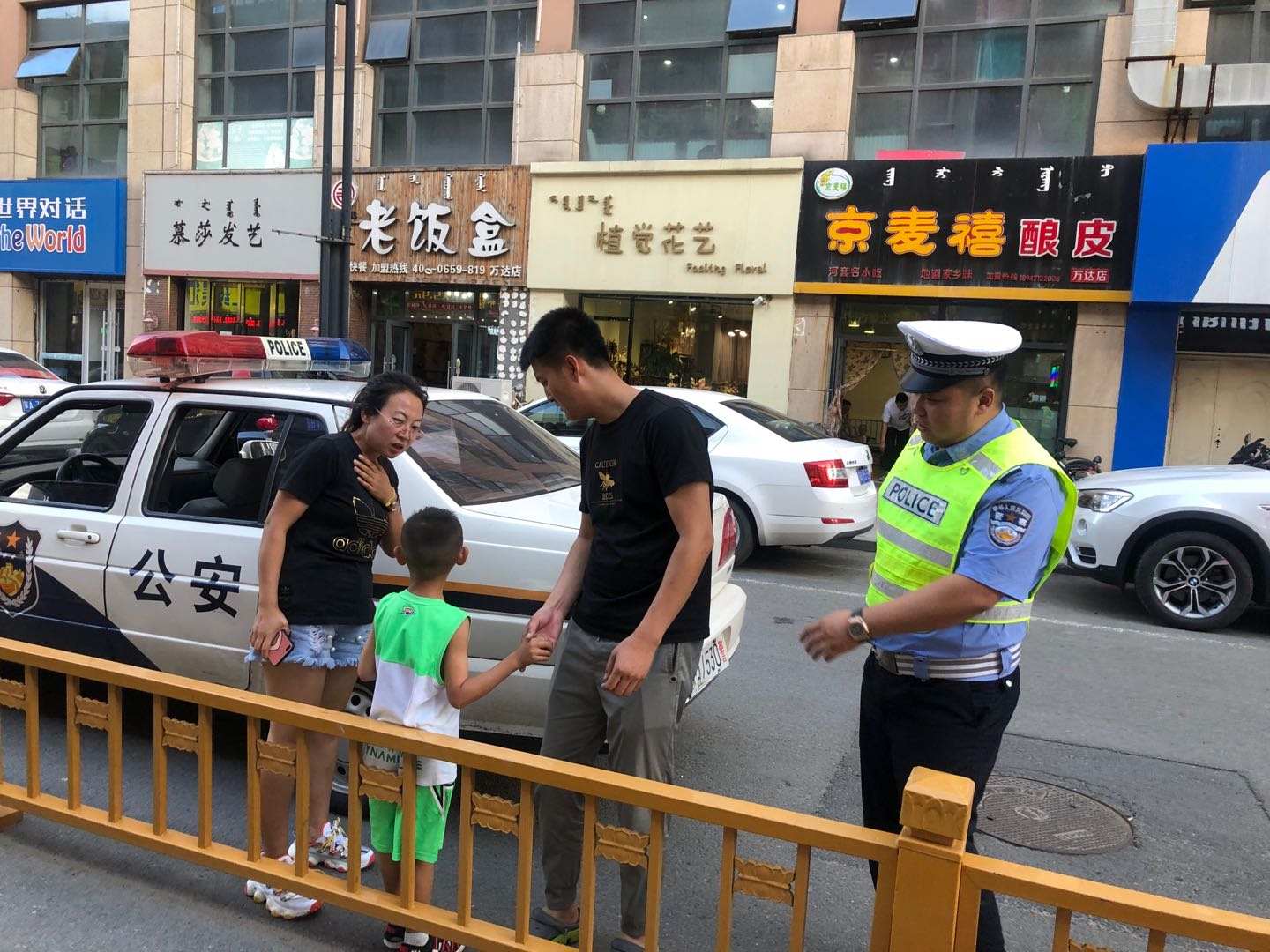 7月14日19時(shí)許,呼和浩特市萬(wàn)達(dá)一巷,呼和浩特市公安局交警支隊(duì)賽罕大隊(duì)八中隊(duì)的民警正在這里巡邏。突然一名6歲左右的小男孩跑到執(zhí)勤交警律國(guó)偉面前:哭著說(shuō)找不到父母,想請(qǐng)警察叔叔幫助尋找他的媽媽。