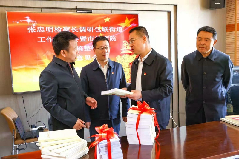 調(diào)研期間,市檢察院還向街道贈送了蒙漢雙語版《民法典》、黨史學習教育等書籍資料。