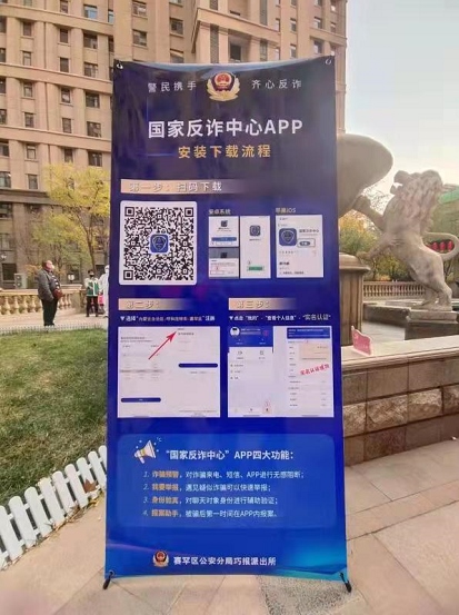 按照樓號(hào)的不同,中海物業(yè)的工作人員將居民分成了三隊(duì),分別在西門設(shè)置了三個(gè)檢測站。巧報(bào)派出所民警岳軍就站在三個(gè)檢測站中間的空地上,手里拿著一沓防電信詐騙宣傳材料,默默地注視著排隊(duì)的人群。