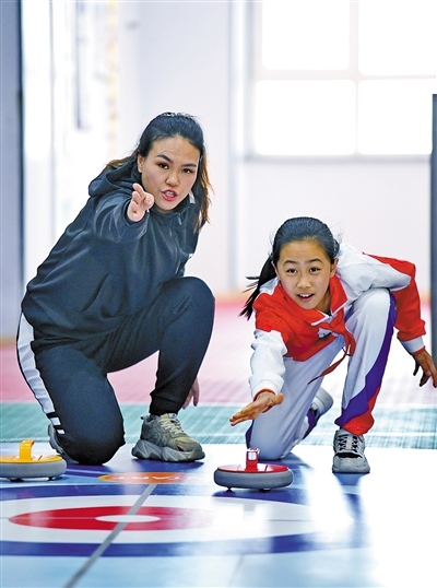 “帶動更多人愛上冰雪運動”,這是呼和浩特市錫林南路小學(xué)分校體育教師海霞的小心愿。學(xué)校在2021年6月開設(shè)旱地冰壺社團課,海霞是社團課的老師。2020年冬,呼和浩特市組織中小學(xué)體育教師冰雪項目培訓(xùn),海霞第一次真正接觸冰雪運動,并深深愛上了冰雪運動。海霞開始通過網(wǎng)絡(luò)自學(xué)冰壺項目技巧等,不斷充實專業(yè)知識。功夫不負有心人,學(xué)校社團成立僅半個月后,海霞帶領(lǐng)社團學(xué)生代表學(xué)校參加呼和浩特市中小學(xué)“冰雪運動進校園”旱地冰壺比賽,就拿到了女子組冠軍的好成績,她倍感振奮。“我看到學(xué)生們對冰壺項目由新奇到喜歡再到喜愛,由衷高興。平時的體育課中,我也經(jīng)常給學(xué)生普及冰雪運動知識,越來越多學(xué)生甚至老師開始了解冰雪運動,我覺得自己的工作很有意義?!焙O颊f。