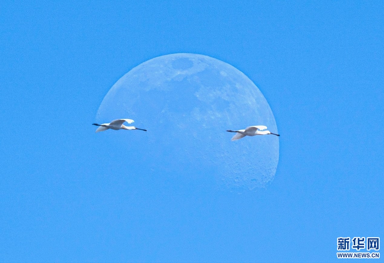 兩只候鳥在內蒙古自治區(qū)土默特左旗海流水庫上空飛翔。新華網(wǎng)發(fā)(楊鑫 攝)