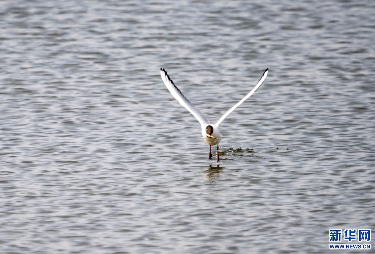 一只候鳥在土默特左旗海流水庫覓食休息。新華網(wǎng)發(fā)(陽光 攝)