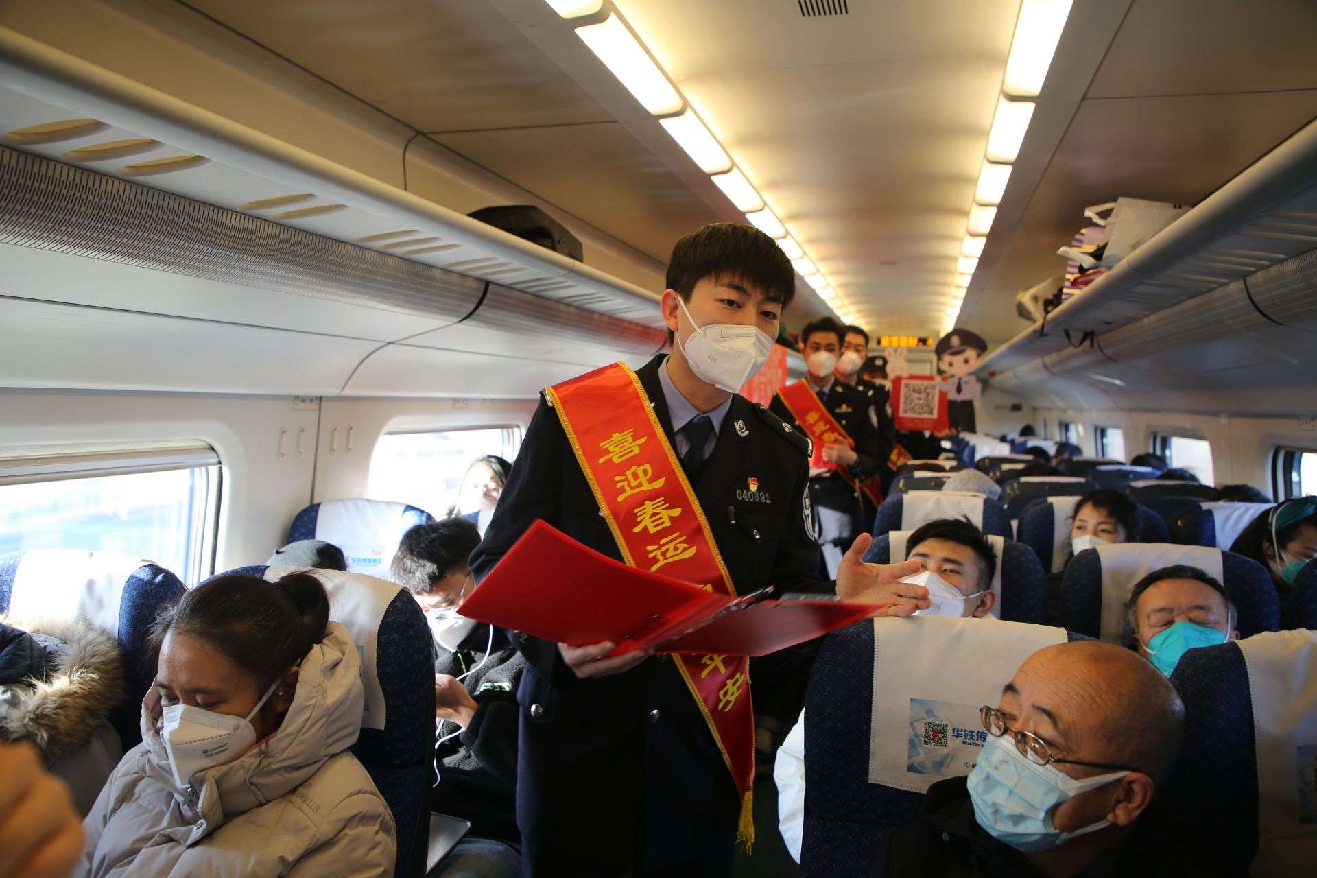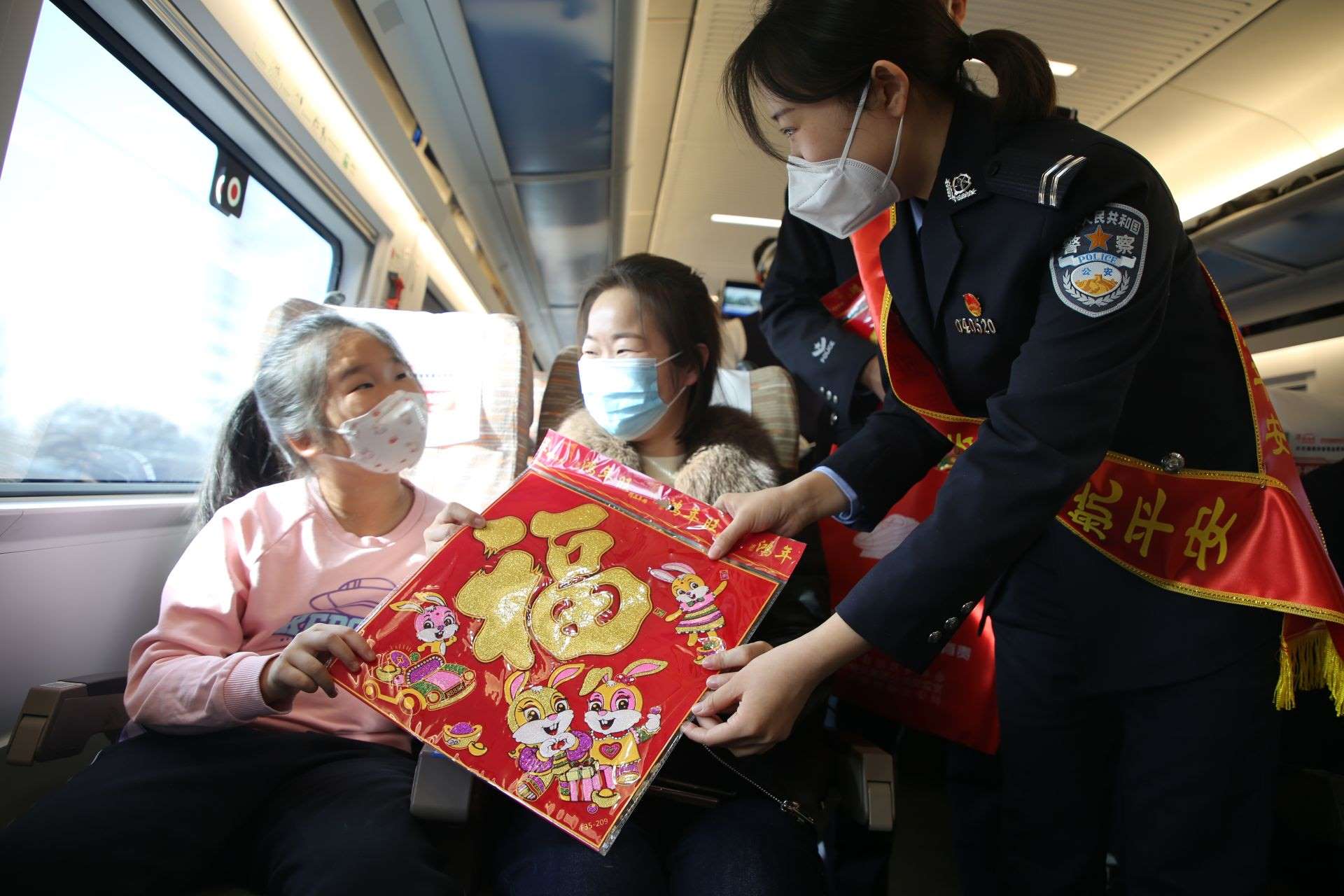同時,呼和浩特鐵路警方組織管內(nèi)各所隊、文藝小分隊進村入戶、登乘列車,集中開展形式多樣、內(nèi)容豐富的主題宣傳活動,通過懸掛橫幅、擺放展板、現(xiàn)場答疑、發(fā)放宣傳手冊、贈送“福”字等方式,向過往旅客講解出行安全常識,提升旅客群眾的安全意識。
