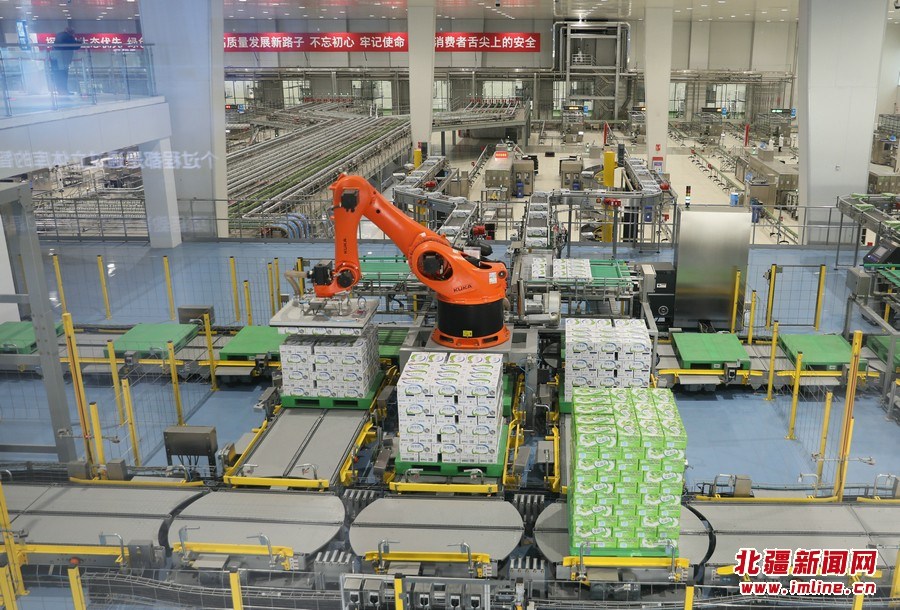 車間內(nèi)一派繁忙,液奶、奶粉生產(chǎn)線在高效運轉(zhuǎn),貼管、分包、裝箱等工序一氣呵成,數(shù)字工廠、無菌車間、智能監(jiān)控等處處體現(xiàn)著現(xiàn)代化、智能化、生態(tài)化。