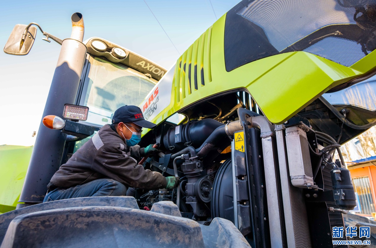??2月18日,在位于呼和浩特市玉泉區(qū)的一家農(nóng)機設(shè)備公司農(nóng)機具維修區(qū),工作人員在為當?shù)氐霓r(nóng)戶檢修拖拉機。新華網(wǎng)發(fā)(丁根厚 攝)