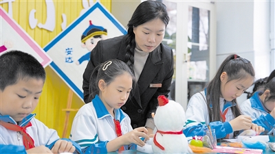 “全國大眾冰雪季給我們帶來了一個絕佳的主題切入點,讓傳統(tǒng)的羊毛氈工藝與冰雪運動相互交融碰撞,孩子們在戳刺羊毛的過程中,對冰雪文化有了更深層次的理解,也對非遺技藝充滿敬意?!苯】到中W(xué)美術(shù)教師山丹邊說邊悉心指導(dǎo)學(xué)生把握形狀、色彩與紋理,幫助他們將創(chuàng)意更好地在羊毛氈作品中呈現(xiàn)?!拔以谥谱鬟@個滑雪小人的時候,就一直在想自己滑雪時的快樂,每戳一針都很用心,希望能把這份快樂表現(xiàn)在作品里?!彼哪甓鄬W(xué)生宋子祺說。