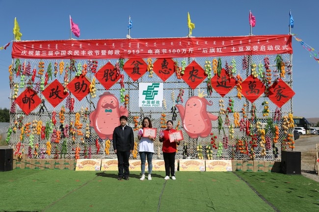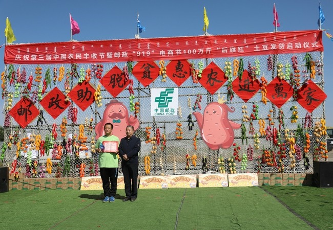 據(jù)介紹,“919電商節(jié)”,是中國郵政集團公司利用線上電商平臺,開展農(nóng)產(chǎn)品進城、助力農(nóng)民脫貧致富的惠民活動。今年活動期間,擬銷售“后旗紅”土豆100萬斤,可以讓一家扶貧龍頭企業(yè)、一家合作社、500多戶農(nóng)牧戶受益。其中北方馬鈴薯批發(fā)市場帶動200戶貧困戶參與集體分紅,戶均增收1000元;高價收購15戶貧困戶、20戶農(nóng)戶馬鈴薯20萬斤,戶均增收1600元;直接間接帶動務工人員265人,人均增收420元;活動期間將為28戶農(nóng)戶提供免費耕作服務,免費耕作土地總畝數(shù)940畝,幫助28戶農(nóng)戶節(jié)省開支42300元,戶均節(jié)省1511元。