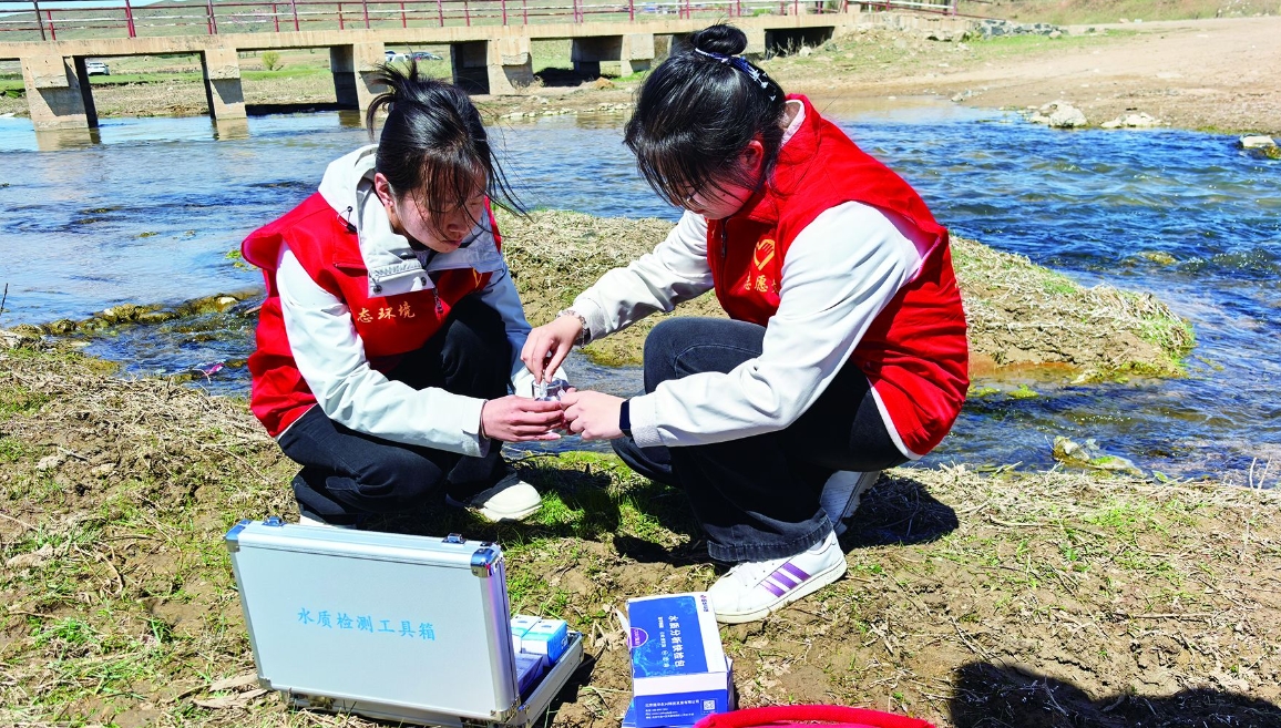 志愿者們用專業(yè)檢測(cè)設(shè)備開展水質(zhì)檢測(cè)工作 馬佳敏 攝
