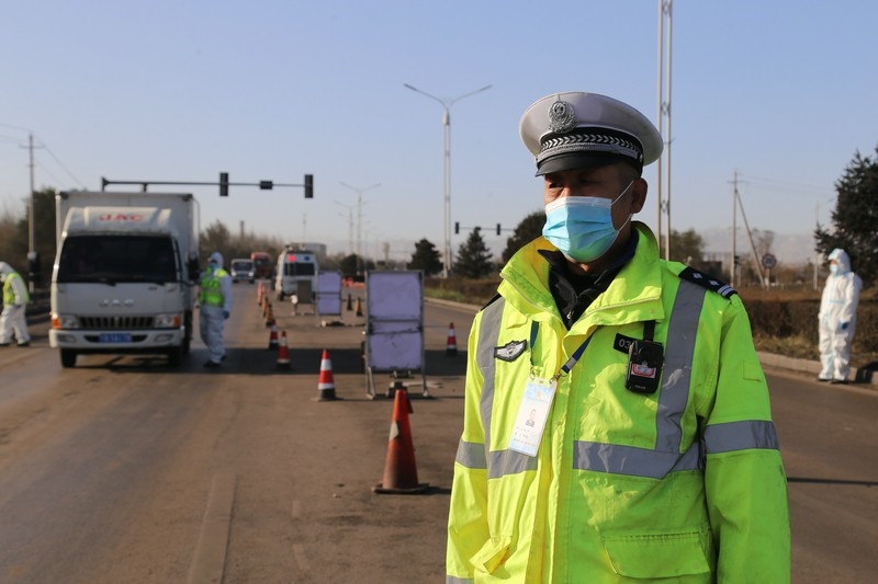 標(biāo)準(zhǔn)的停車手勢,文明的禮貌用語,敬禮,請您出示核酸證明,行程碼……在110國道烏海市烏達(dá)區(qū)三道坎疫情防控檢查點(diǎn),一位兩鬢微白的民警在一眾年輕人中格外顯眼,正在核查進(jìn)入烏達(dá)區(qū)方向車輛司乘人員的健康碼、行程碼及48小時(shí)內(nèi)核酸檢測證明,從早上7點(diǎn)50分上崗便冒著寒風(fēng)排查車輛,到下午4點(diǎn)一站就是8個(gè)小時(shí),最多的時(shí)候,車流量達(dá)到2600多輛,勸返車輛30多輛40余人,勸他休息,他卻說:“現(xiàn)在是非常時(shí)期,打好疫情攻堅(jiān)戰(zhàn),需要我們眾志成城,一起努力!”