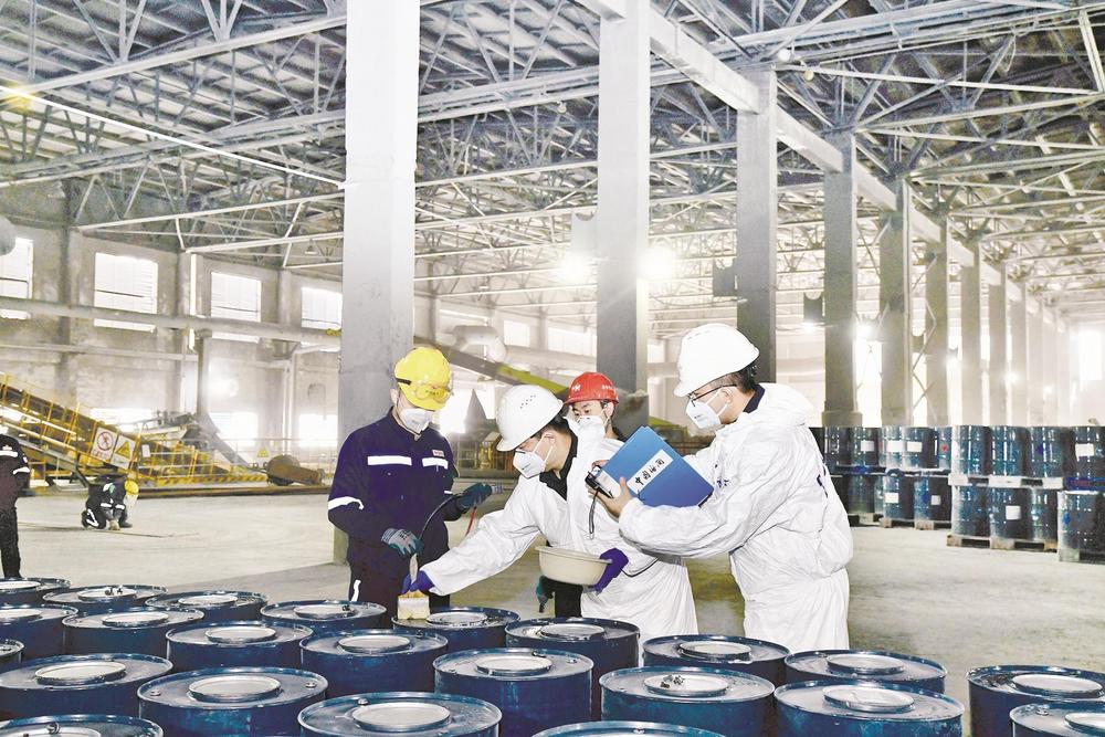 近日,烏海海關關員對內蒙古宜化化工有限公司出口的化工產(chǎn)品進行檢查,不久后,這些產(chǎn)品將通過陸海聯(lián)運銷往東南亞市場。(王超 攝)