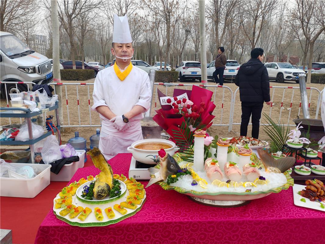 活動現(xiàn)場,最火爆的是開河魚躍?黃河美食春日廚藝盛典展區(qū),18家本地餐飲單位的廚師們在這里同臺亮技,大家以黃河開河魚為核心食材,蒸、煮、煎、烤、燜各式技法齊上陣,一道道色香味俱全的黃河魚佳肴依次亮相。市民游客駐足品鑒、拍照打卡,鮮香四溢的魚味縈繞全場,讓大家在舌尖上了解黃河飲食文化的獨特魅力。