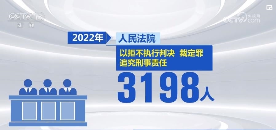 2022年,人民法院以拒不執(zhí)行判決、裁定罪追究刑事責(zé)任3198人。下一步,最高人民法院將聯(lián)合公安機(jī)關(guān)、檢察機(jī)關(guān)開展集中打擊拒不執(zhí)行判決、裁定犯罪專項行動,建立健全公檢法機(jī)關(guān)依法懲治拒不執(zhí)行判決、裁定犯罪的常態(tài)化工作機(jī)制。
