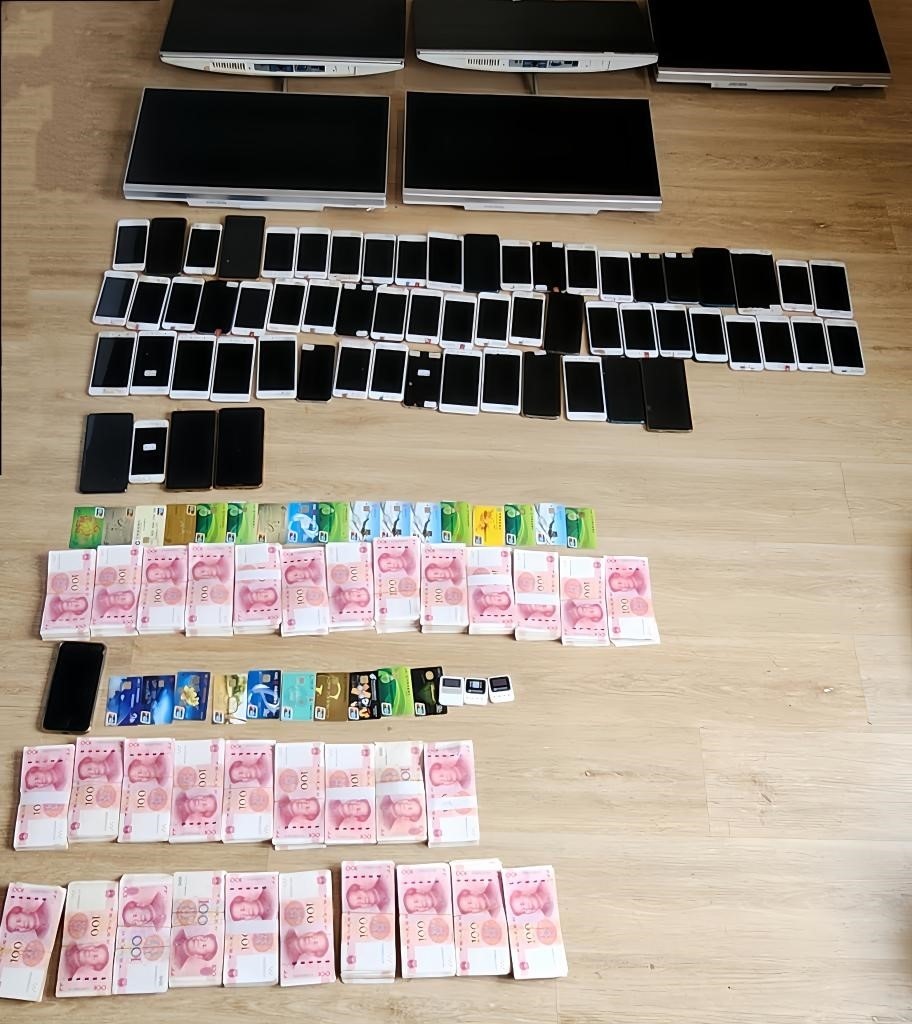 這是在抓捕現(xiàn)場查獲的作案工具和涉案現(xiàn)金。(受訪單位供圖)