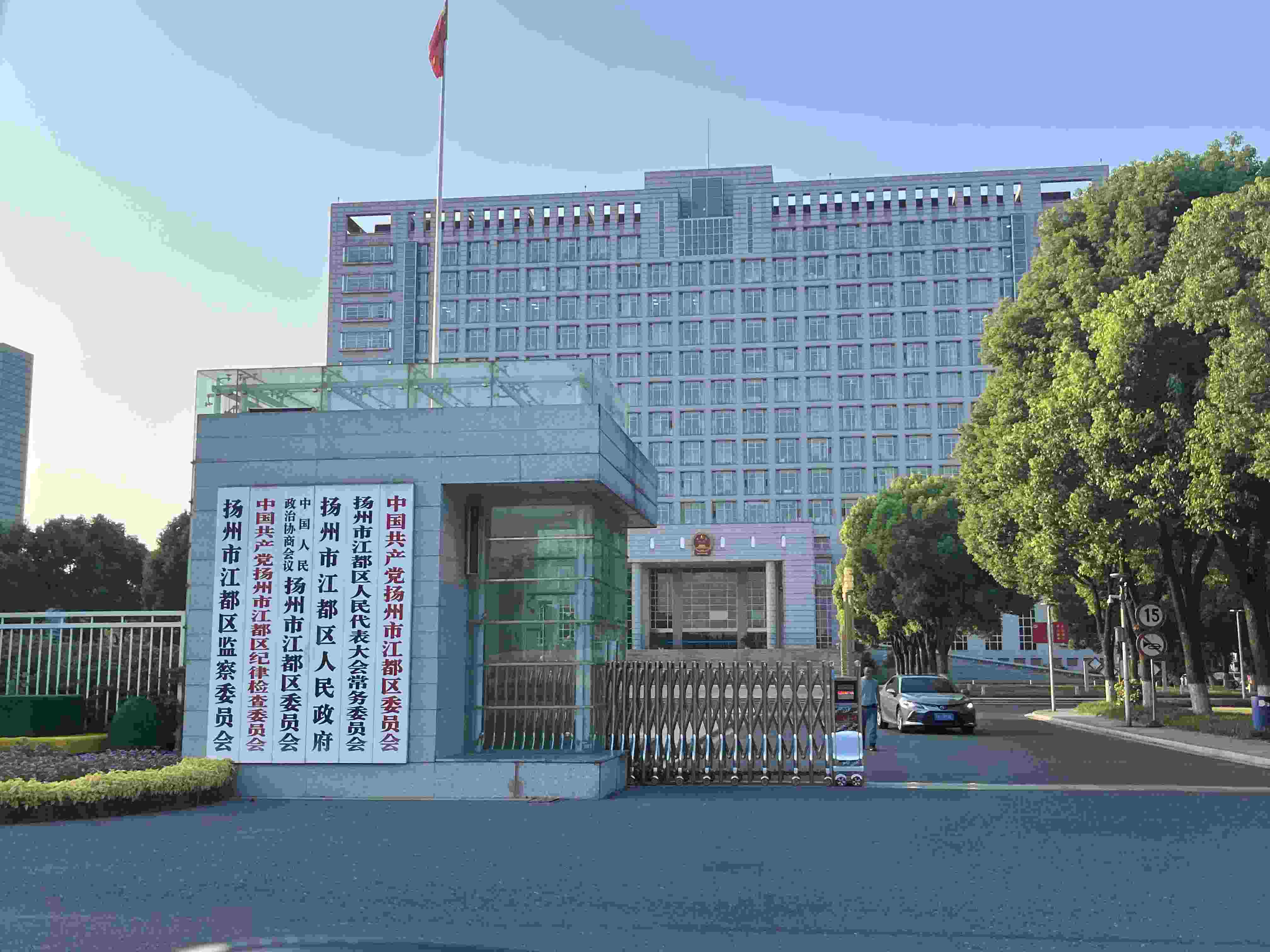 江都區(qū)政府門前。“高書記”“孫主任”曾在此“演戲”騙取受害人信任。