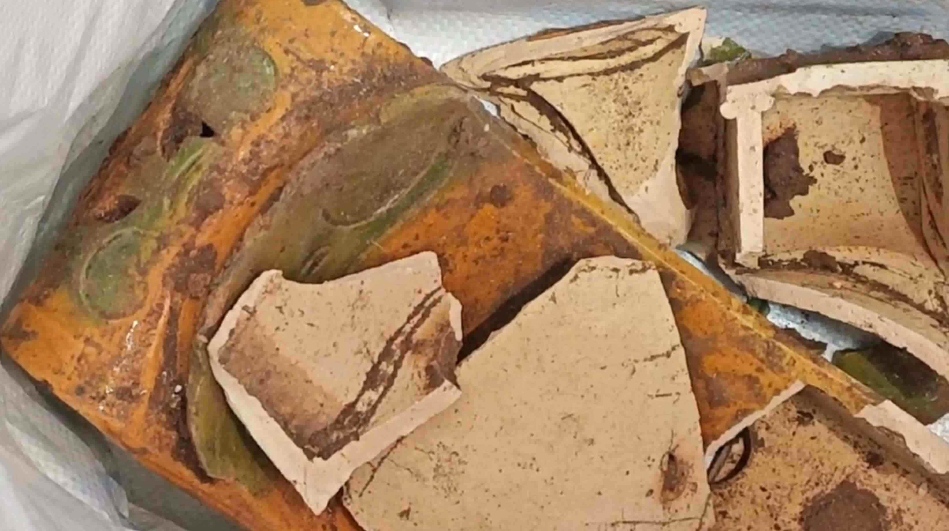 ▲嫌疑人從墓室里竊得并在逃跑時摔碎的瓷枕