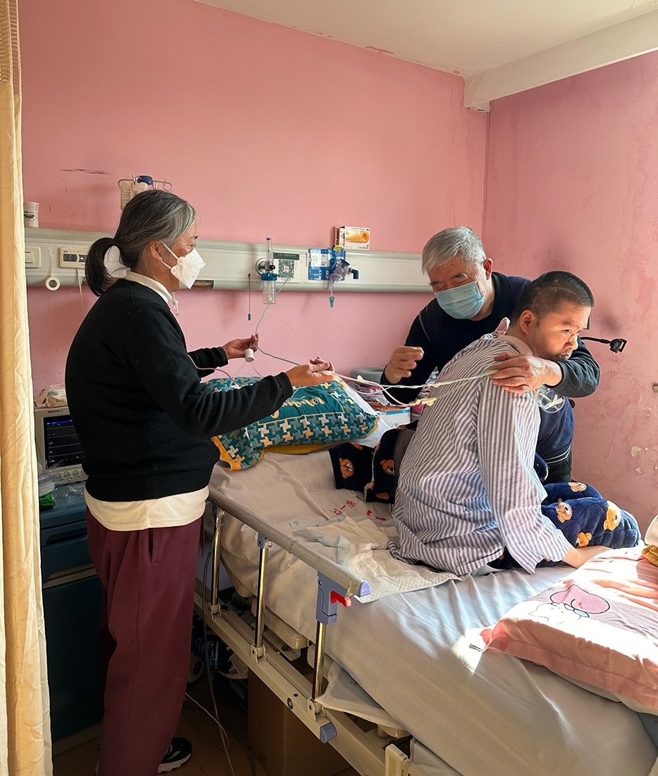 張昌碩身高一米八幾,張宏銀和鄭建英需要合力才能把他從床上推起來,為了省錢,除了需要專業(yè)醫(yī)護人員進行的康復(fù)項目,比如針灸,或者要用理療設(shè)備,他們大多自己給孩子做康復(fù)——按摩他的全身,包括手指腳趾,每一個地方都不能錯過。
