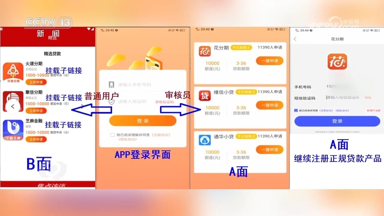 安徽省蕪湖市公安局經(jīng)開區(qū)分局偵查打擊部警務(wù)技術(shù)二級主管高陽:“提供審核的都是正規(guī)的貸款產(chǎn)品,點擊以后一步一步看起來都很正規(guī),這樣審核員就會通過,覺得這個APP是正常的,可以在官方應(yīng)用商城上架。但是普通用戶登錄以后,就會下載新的APP,新的APP都是詐騙APP。”