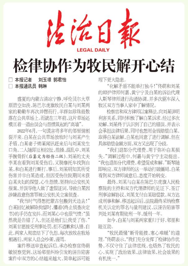 “牧民最懂‘?dāng)喙悄芙?,寒心難暖’的道理。”佟萌表示,“我們充分發(fā)揮了檢律協(xié)作優(yōu)勢(shì),不僅守住了法律底線,也焐熱了牧民的心,實(shí)現(xiàn)了政治效果、法律效果、社會(huì)效果的有機(jī)統(tǒng)一?!保?span style="text-align: justify;">作者 劉玉璟 郭君怡 韓琳)