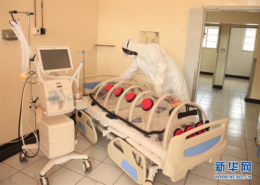 這是4月9日,在津巴布韋首都哈拉雷,一名醫(yī)生在由中資民營企業(yè)出資升級改造的威爾金斯醫(yī)院內工作。剛剛經歷經濟衰退和旱災的津巴布韋,新冠疫情的防控壓力很大。在抗擊疫情的關鍵時刻,中國政府通過多種形式幫助津政府和人民,為津巴布韋的抗疫貢獻“中國力量”。新華社發(fā)(肖恩·朱薩攝)