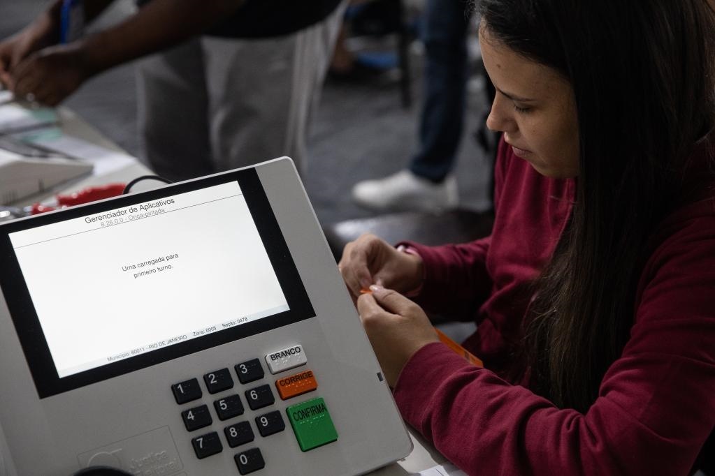 2022年9月21日,在巴西里約熱內(nèi)盧,工作人員參與大選電子投票箱的密封工作。新華社記者王天聰攝