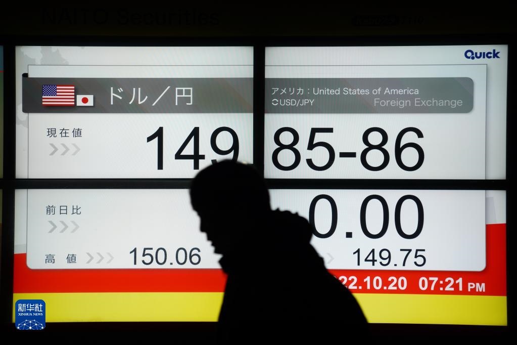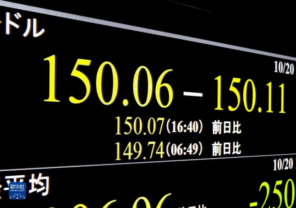 這是10月20日在日本東京拍攝的日元對(duì)美元匯率信息顯示屏。新華社/共同社