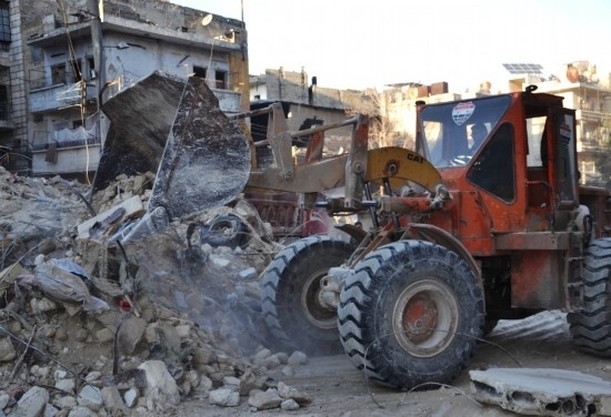 2月9日,大型機械在敘利亞阿勒頗參與救援。新華社發(fā)
