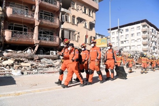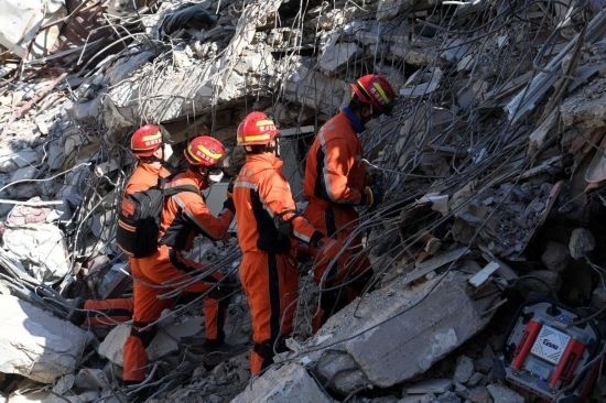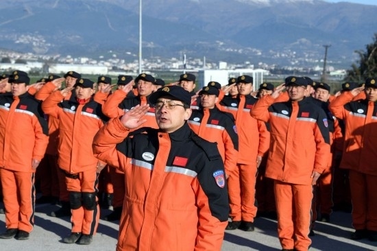 2月14日,中國(guó)救援隊(duì)與中國(guó)香港特區(qū)救援隊(duì)聯(lián)合編組在土耳其哈塔伊省安塔基亞市開展救援工作。