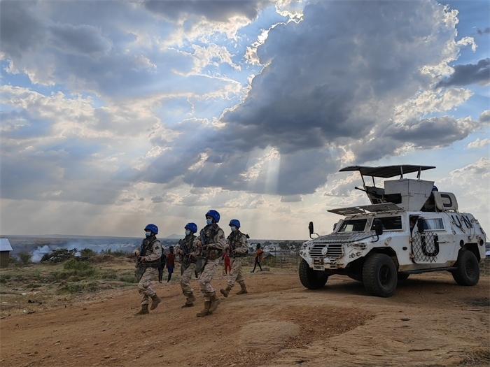 2022年12月,“劉老莊連”隨中國第九批赴南蘇丹(朱巴)維和步兵營奔赴維和戰(zhàn)場,重點擔負警戒巡邏、武裝護衛(wèi)、隔離沖突等維和任務(wù)。截至目前,“劉老莊連”累計行程1500余公里,高標準完成了各項授權(quán)任務(wù),受到聯(lián)南蘇團各級高度贊揚。這也是英雄的“劉老莊連”戰(zhàn)旗第一次飄揚在非洲大地。