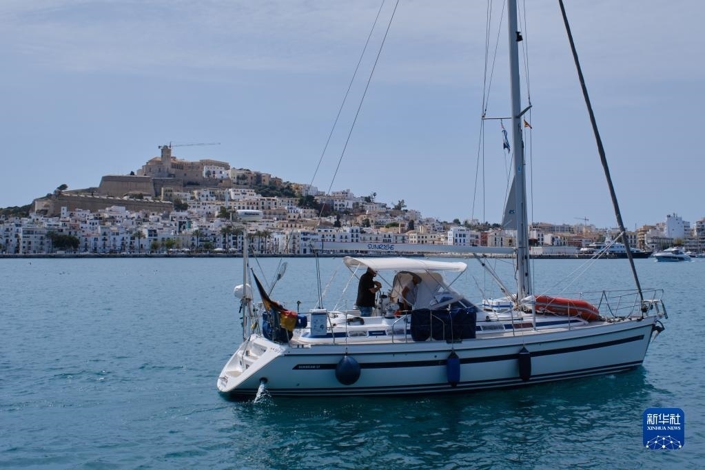 4月10日,一艘帆船駛入西班牙巴利阿里群島伊維薩島港口。