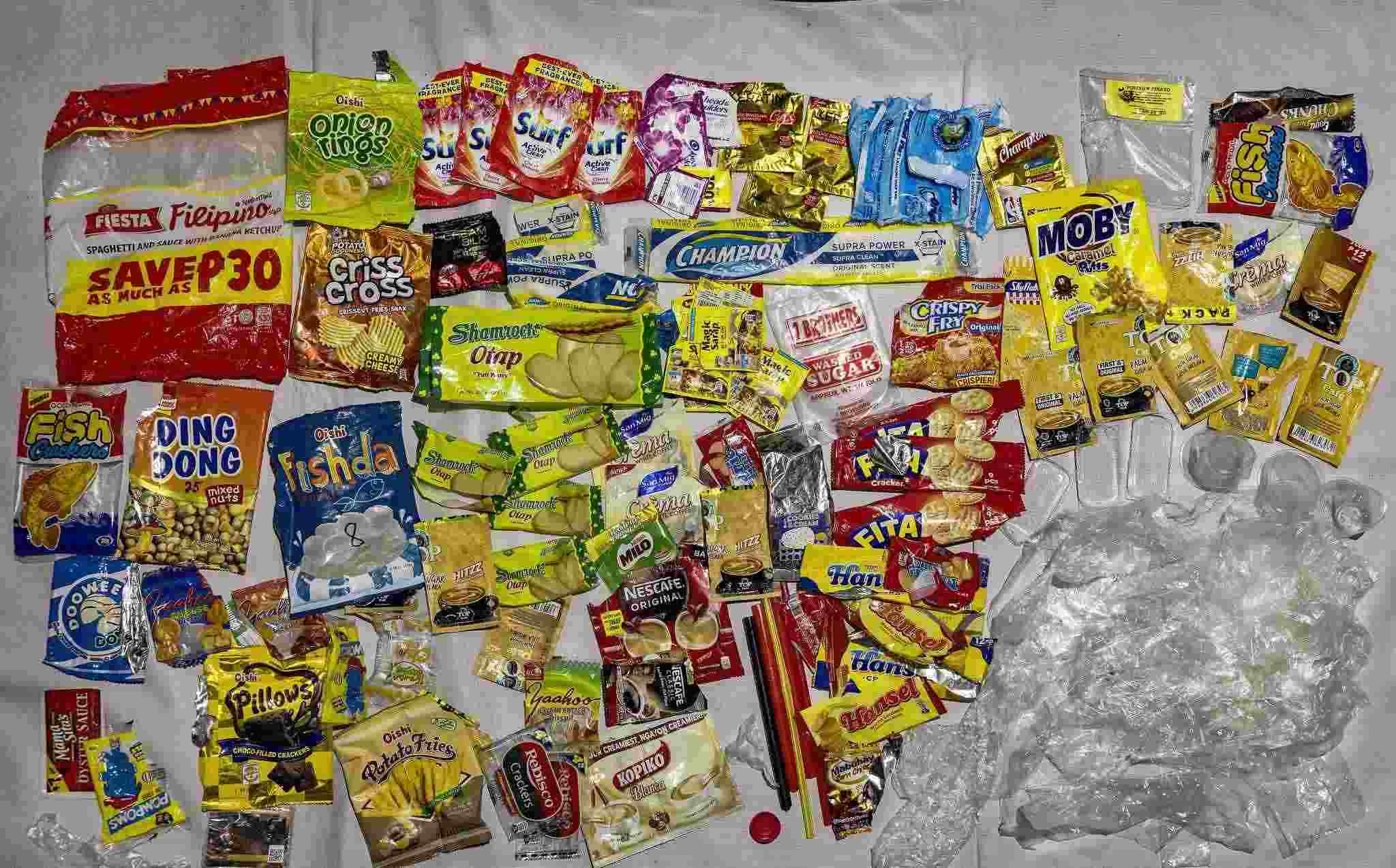 當?shù)貢r間2023年4月20日,菲律賓馬尼拉,奎松市,Mercado家在一周內產生的塑料垃圾。