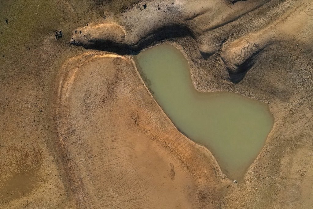 當(dāng)?shù)貢r(shí)間2022年8月20日,西班牙維拉諾瓦德索,干旱導(dǎo)致水庫的水位較低。