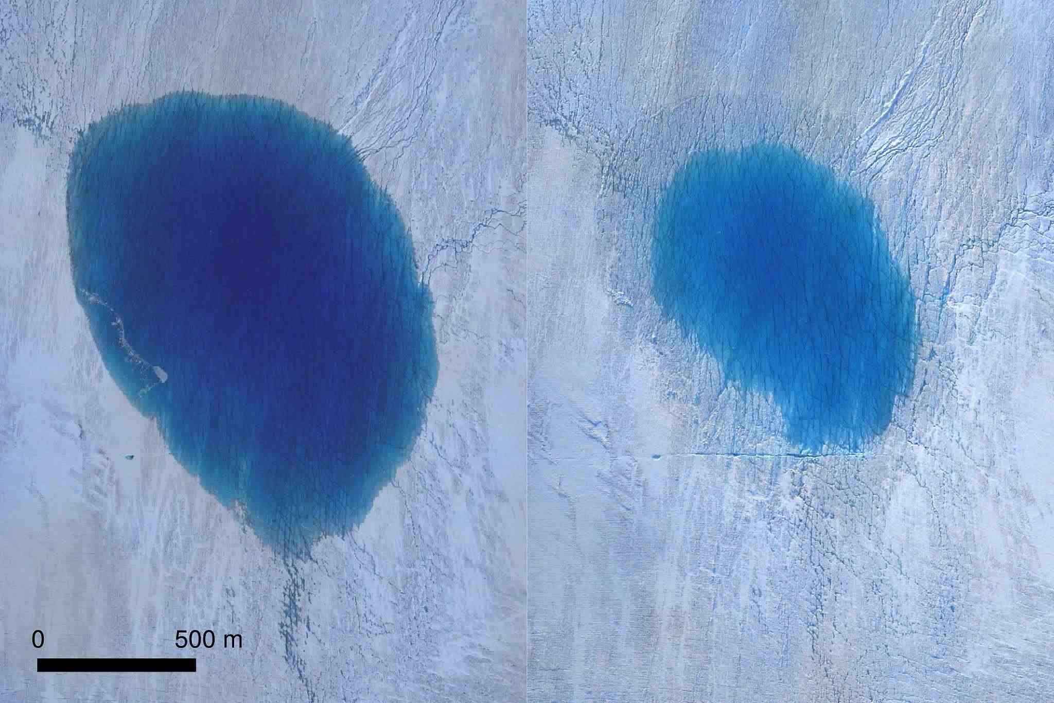 當(dāng)?shù)貢r(shí)間2019年12月2日,格陵蘭島冰蓋上一個(gè)由融冰的水形成的湖泊在蓄滿水之后開始快速破裂和排水,由于氣候變化,這種現(xiàn)象越來越頻繁。