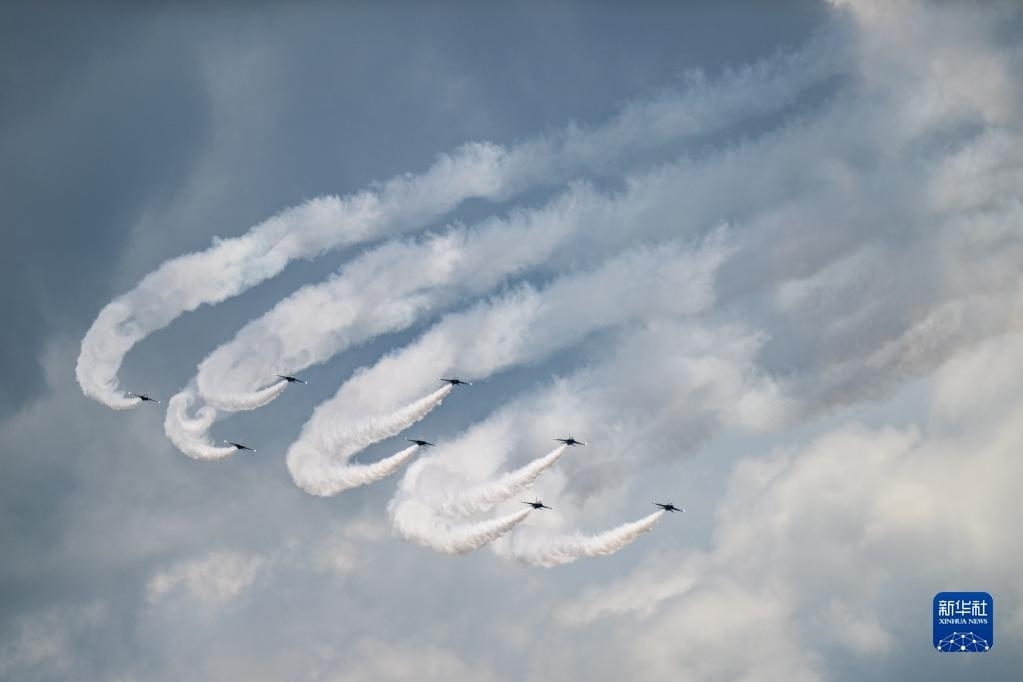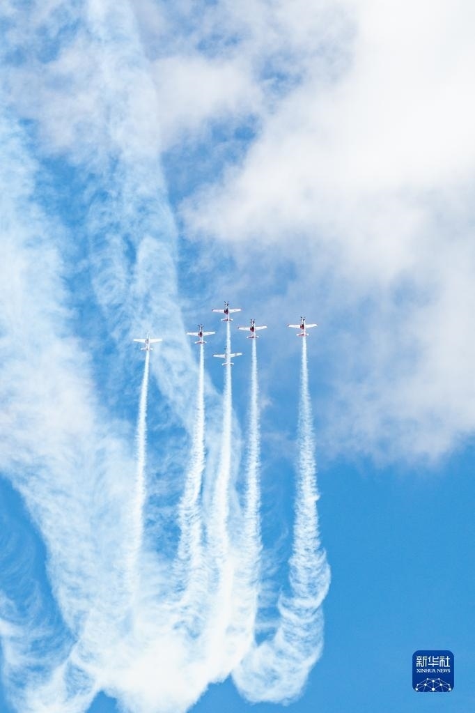 5月23日,在馬來西亞蘭卡威舉行的第16屆蘭卡威國際海事和航空展上,飛行表演隊(duì)進(jìn)行特技飛行表演。