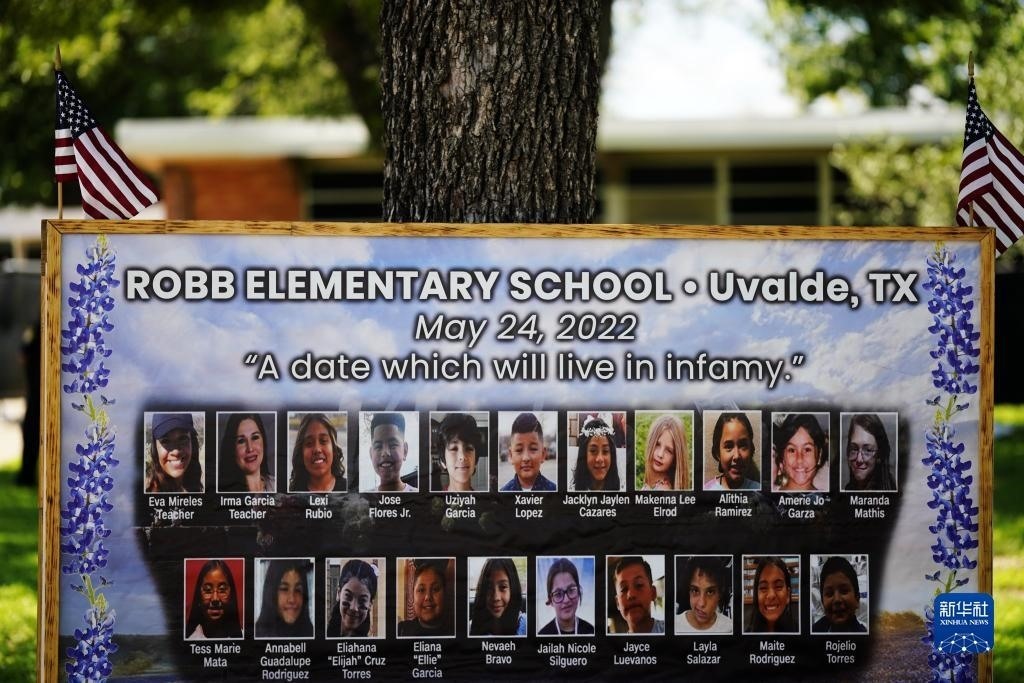 當(dāng)日是美國(guó)尤瓦爾迪大規(guī)模校園槍擊事件一周年。2022年5月24日,19名學(xué)生和2名教師在尤瓦爾迪市羅布小學(xué)槍擊事件中遇難。