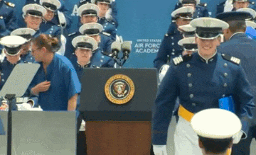 包括空軍學院官員和兩名特勤局特工在內的人群也趕忙上前,抓住拜登的手臂,幫助他站起來。