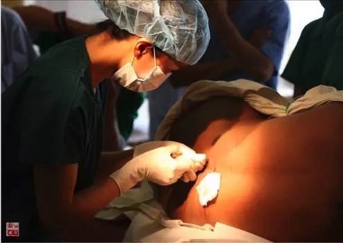 2010年11月12日,“和平方舟”號醫(yī)院船麻醉師盛睿芳對沁的母親實施麻醉,準備剖腹產。新華社記者琚振華攝