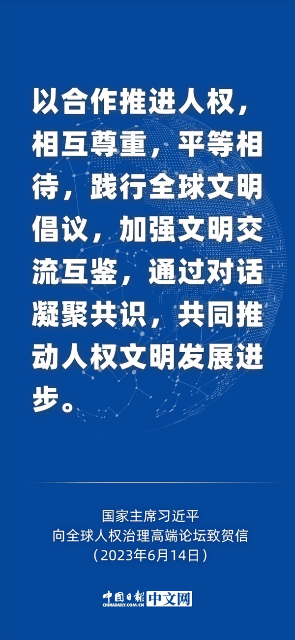 6月14日,國(guó)家主席習(xí)近平向全球人權(quán)治理高端論壇致賀信。習(xí)近平指出,當(dāng)前,人類(lèi)又一次站在歷史的十字路口,全球人權(quán)治理面臨嚴(yán)峻挑戰(zhàn)。我們主張: