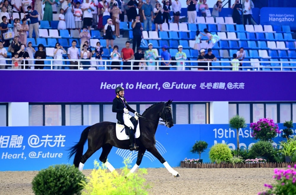 “今天對(duì)我來說太重要了,我的妻子、孩子在場(chǎng)邊目睹了這一刻,這是一場(chǎng)永遠(yuǎn)值得回憶的比賽。我等這枚金牌已經(jīng)25年了,以前我只獲得過銅牌和銀牌。”安巴克不僅實(shí)現(xiàn)了個(gè)人突破,也贏得了馬來西亞馬術(shù)項(xiàng)目的第一塊亞運(yùn)金牌。