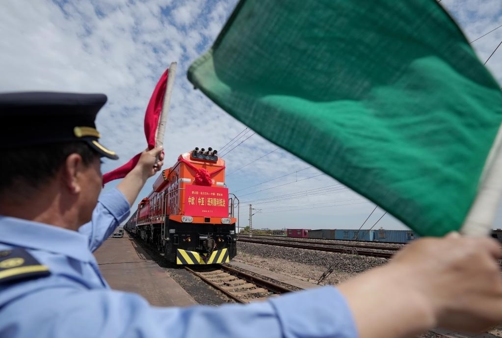 2023年6月11日,一列滿載煤炭的中歐(中亞)班列抵達(dá)中國(guó)鐵路北京局曹妃甸站。新華社記者楊世堯攝